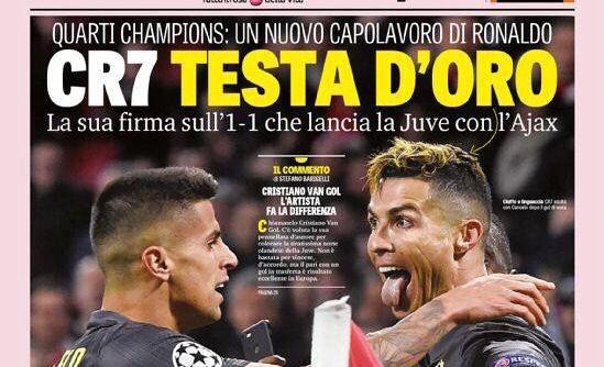 C'è la Juventus al centro della rassegna stampa di oggi. I giornali in edicola giovedì 11 aprile 2019 parlano della partita di Champions League dei bianconeri, ma raccontano anche la vigilia di Europa League del Napoli, o l'insediamento di Montella nella Fiorentina. O ancora, le ultime sul Milan e la situazione finanziaria. Scorri la gallery per leggere i titoli.