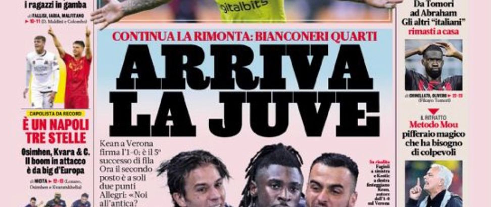 La vittoria della Juventus sull’Hellas Verona, il primo gol in Serie A di Luka Romero e il secondo posto in campionato della Lazio: questo e molto altro nelle prime pagine dei quotidiani sportivi e non in edicola oggi, 11 novembre.