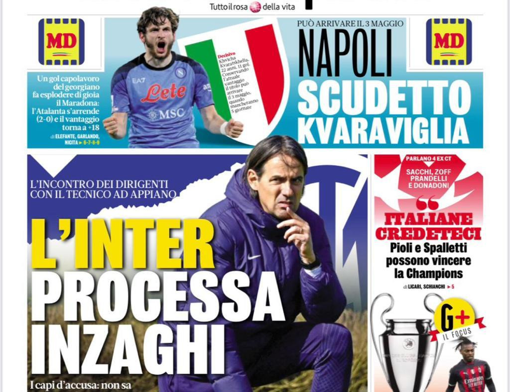 Le prime pagine sportive dei quotidiani in edicola domenica 12 marzo si concentrano sulla vittoria del Napoli per 2-0 contro l’Atalanta, ma anche sul pareggio della Lazio a Bologna e sulla vittoria dell’Udinese a Empoli. Oggi però in campo anche la Juventus e la Roma per rimanere al passo delle altre.