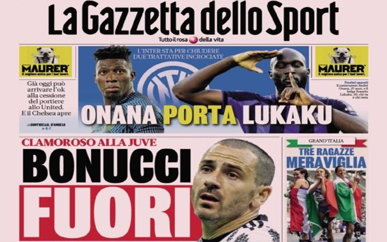 Le prime pagine sportive dei quotidiani in edicola giovedì 14 luglio si concentrano sul calciomercato delle squadre di Serie A ma anche sulla decisione della Juventus di mettere Bonucci sul mercato.