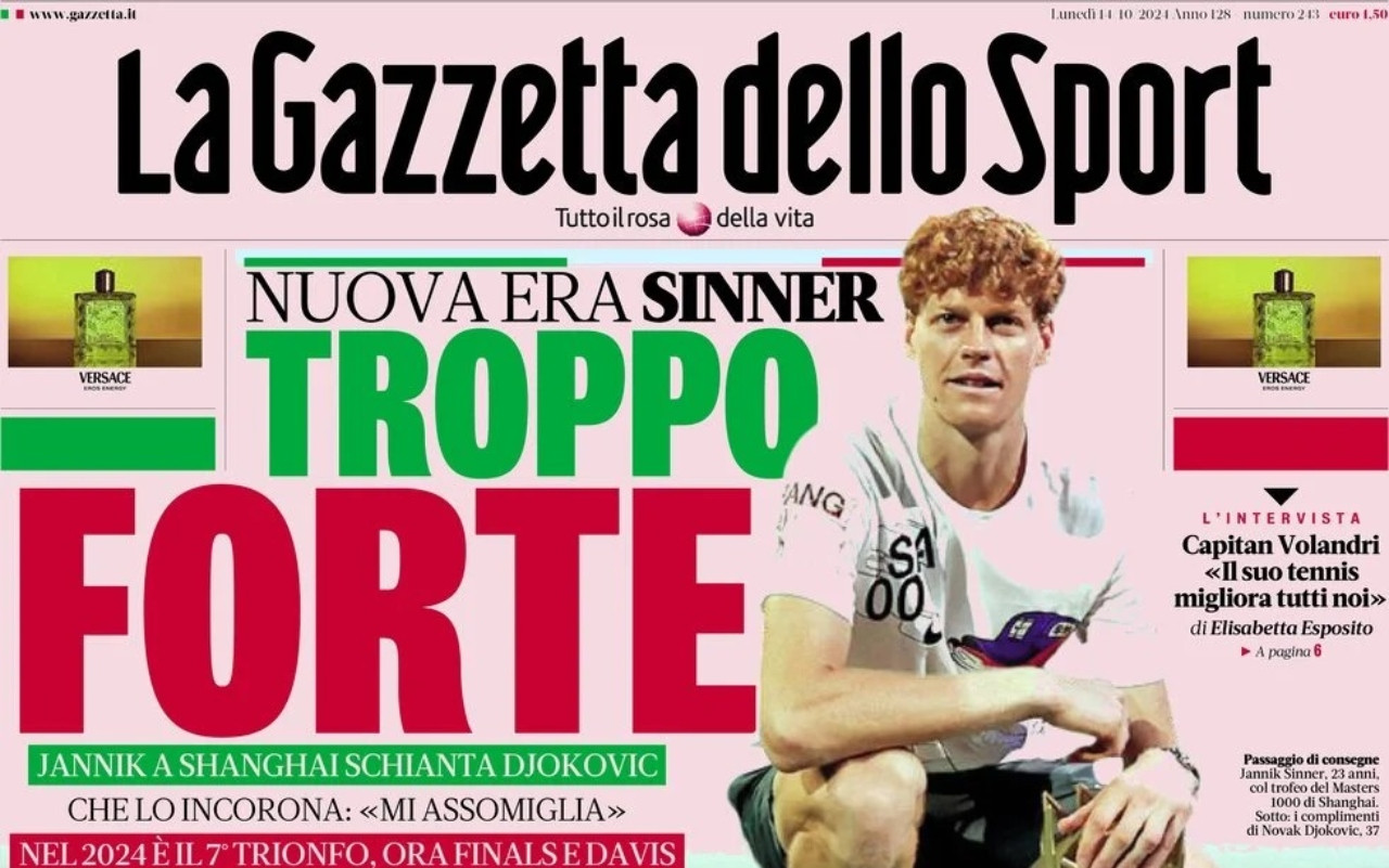 Le prime pagine dei quotidiani sportivi in edicola oggi, lunedì 14 ottobre, si concentrano sulla Nations League, le ultime voci di mercato e gli altri sport, in particolare tennis, con il trionfo di Sinner a Shanghai.