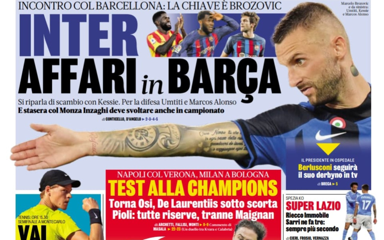 Vince la Lazio che si porta -13 dalla vetta, ma ora tocca a Napoli, Inter e Milan (leggi qui il punto sulla lotta Champions): questi e tanti altri i temi affrontati nelle prime pagine sportive dei quotidiani in edicola oggi, sabato 15 aprile.