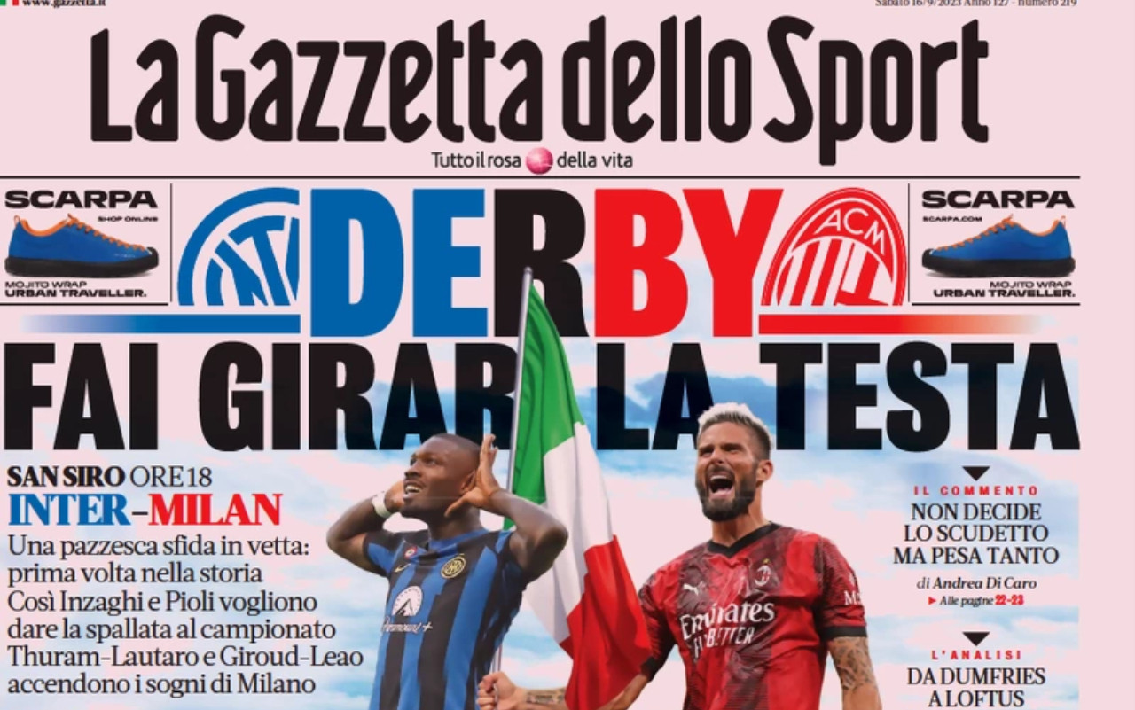 E’ tutto pronto per il ritorno della Serie A: da Juventus-Lazio al derby di Milano. Questi e tanti altri i temi affrontati nelle prime pagine sportive dei quotidiani in edicola oggi, sabato 16 settembre.