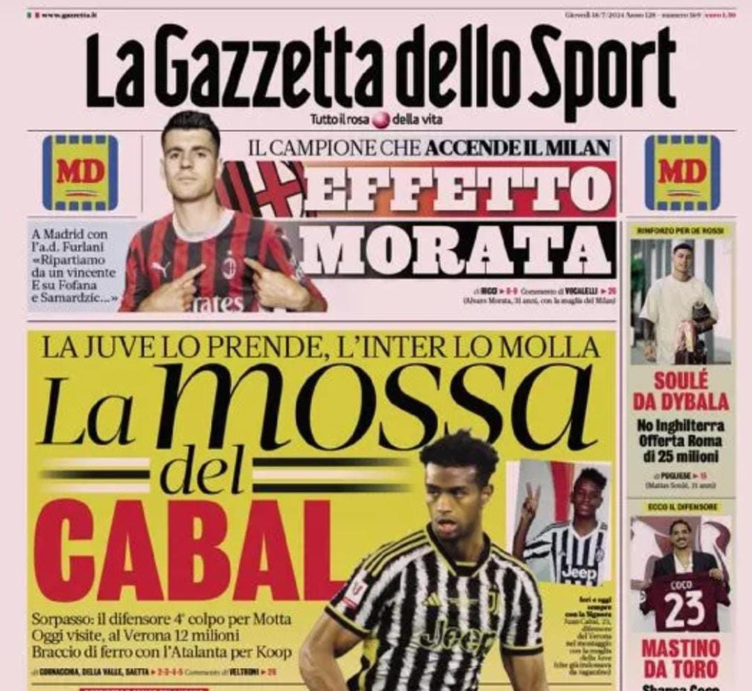 Tanto calciomercato e molto altro sulle prime pagine dei principali quotidiani sportivi italiani in edicola oggi, giovedì 18 luglio 2024.