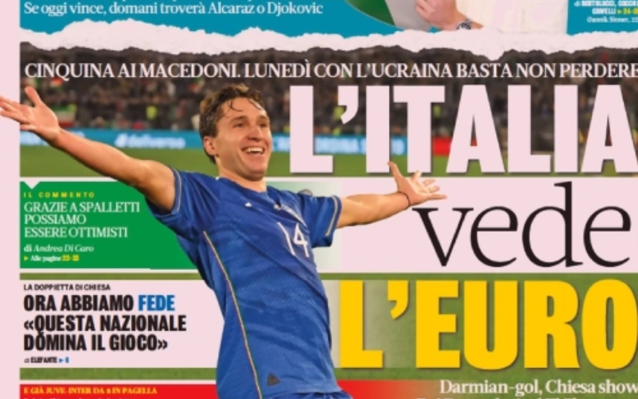 Dalla vittoria dell’Italia contro la Macedonia del Nord alla prossima partita decisiva contro l’Ucraina: questi e tanti altri i temi affrontati nelle prime pagine sportive dei quotidiani in edicola oggi, sabato 18 novembre 2023.