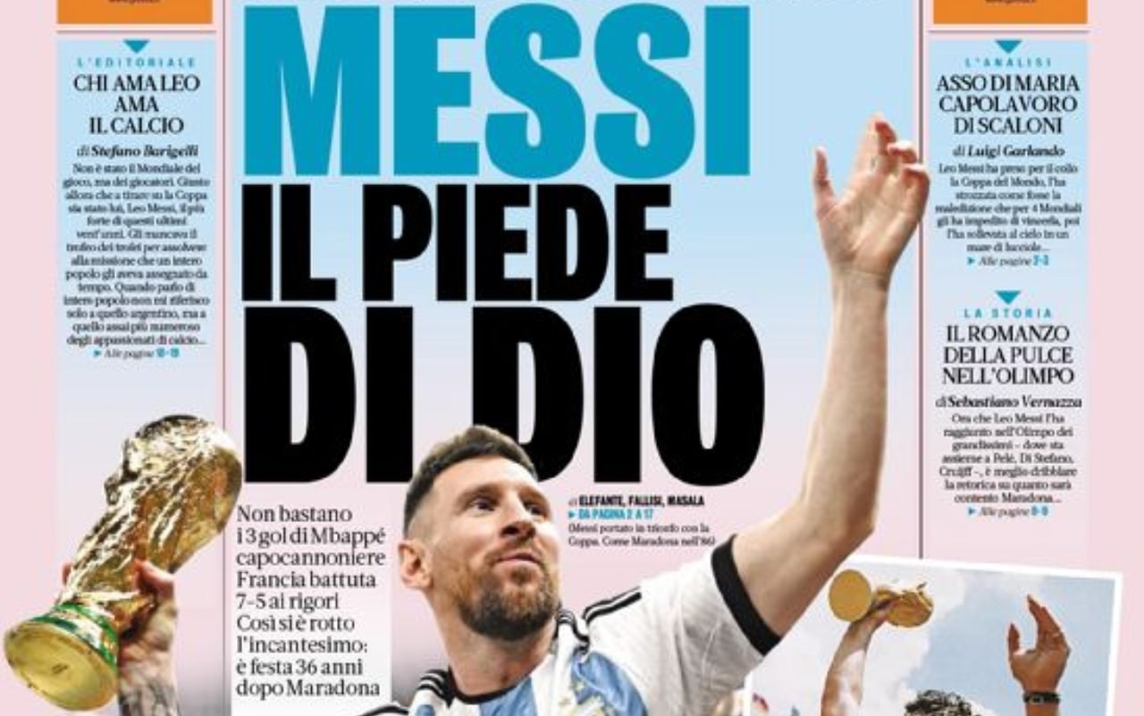La vittoria dell’Argentina al Mondiale e il trionfo di Lionel Messi: questo e molto altro nelle prime pagine dei quotidiani sportivi e non in edicola oggi, 19 dicembre.