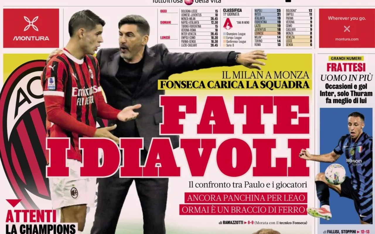 Le prime pagine dei quotidiani sportivi di oggi, 2 novembre, si concentrano sul weekend di Serie A e le partite in programma di Juventus e Milan.