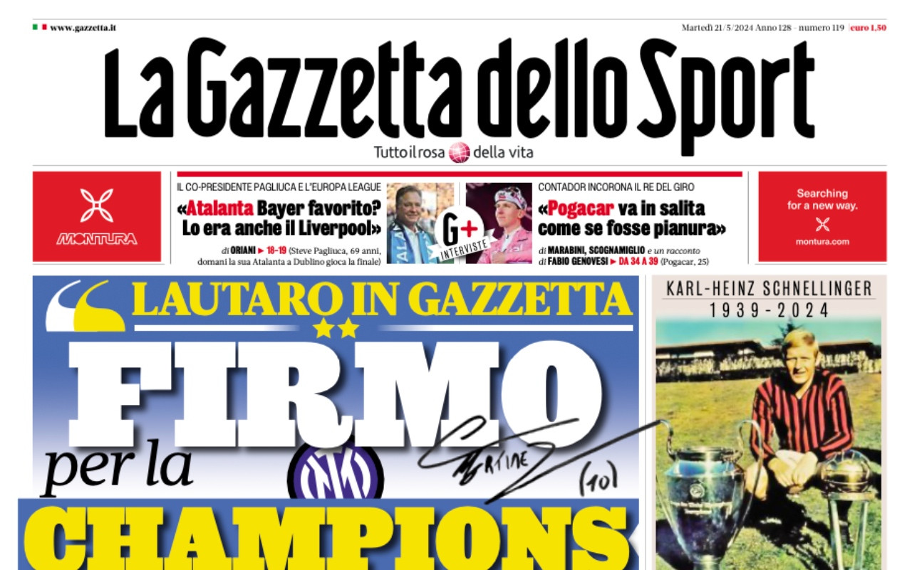 Le prime pagine sportive dei quotidiani in edicola oggi, martedì 21 maggio, si concentrano sulla grande rimonta della Juventus in casa del Bologna e sulle ore calde in casa Inter: tra il rinnovo di Lautaro e la questione Oaktree-Zhang.