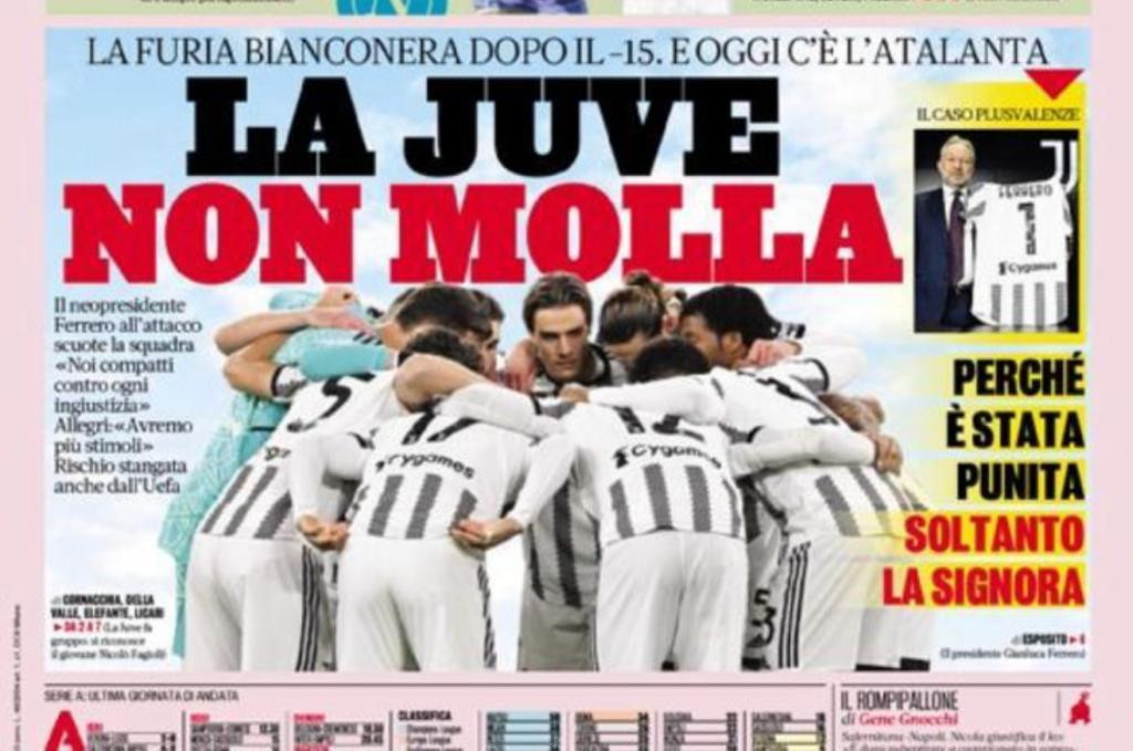 Riparte la Serie A con l’ultima giornata del girone d’andata. Il Napoli chiude a 50 punti, adesso tocca alle altre big: la Juve dovrà ripartire da 22 punti per cercare di tornare in zona Europa. Prosegue anche il calciomercato: si avvicinano gli ultimi giorni di trattative. Questi i temi principali sulle prime pagine dei quotidiani sportivi e non in edicola domenica 22 gennaio 2023.