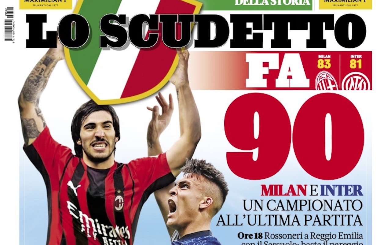 Le prime pagine dei quotidiani sportivi in edicola oggi, domenica 22 maggio 2022, focalizzano l’attenzione sulle ultime 5 partite della Serie A 2021-2022, tra le quali sono incluse Sassuolo-Milan e Inter-Sampdoria, decisive per l’assegnazione dello scudetto.