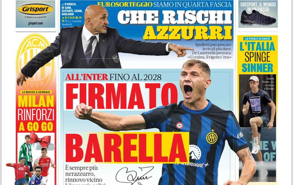 Le prime pagine sportive dei quotidiani in edicola oggi, mercoledì 22 novembre, si concentrano sugli ultimi risultati delle partite valevoli per le qualificazioni a EURO 2024. Con la vittoria della Croazia sull’Armenia, l’Italia sarà in quarta fascia ai sorteggi in programma sabato 2 dicembre alle 18. Spazio anche alla polemica di De Laurentiis sul rigore non dato all’Ucraina.