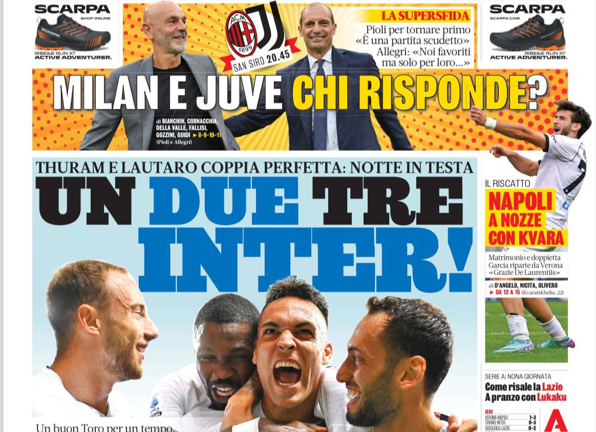 Le prime pagine dei principali quotidiani sportivi in edicola oggi, domenica 22 ottobre 2023, si concentrano sui successi di Napoli, Inter e Lazio in questo nono turno del campionato di Serie A.