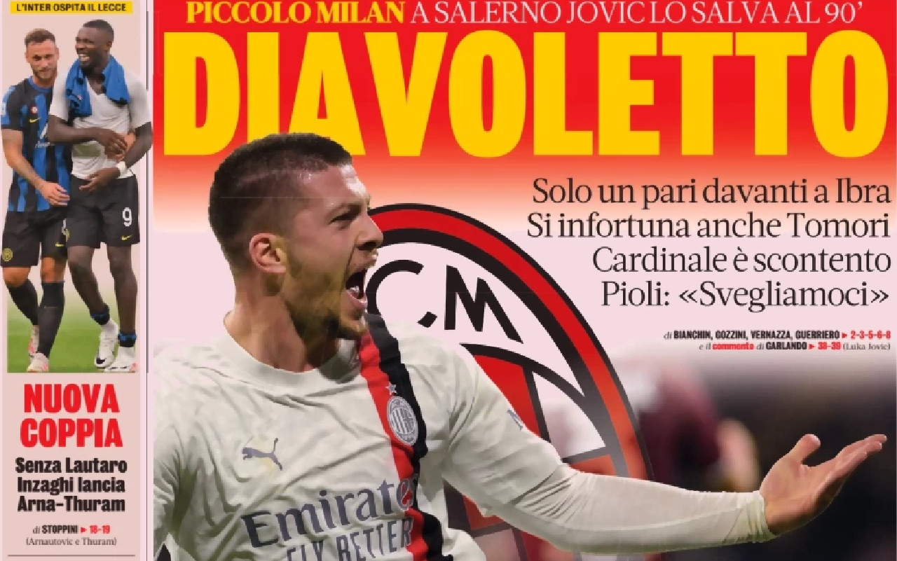 Le prime pagine sportive dei quotidiani in edicola sabato 23 dicembre si concentrano sulle partite della diciassettesima giornata in programma oggi. Da Frosinone-Juventus, che può permettere ai bianconeri di accorciare la distanza che li separa dall’Inter, al big match serale Roma-Napoli.