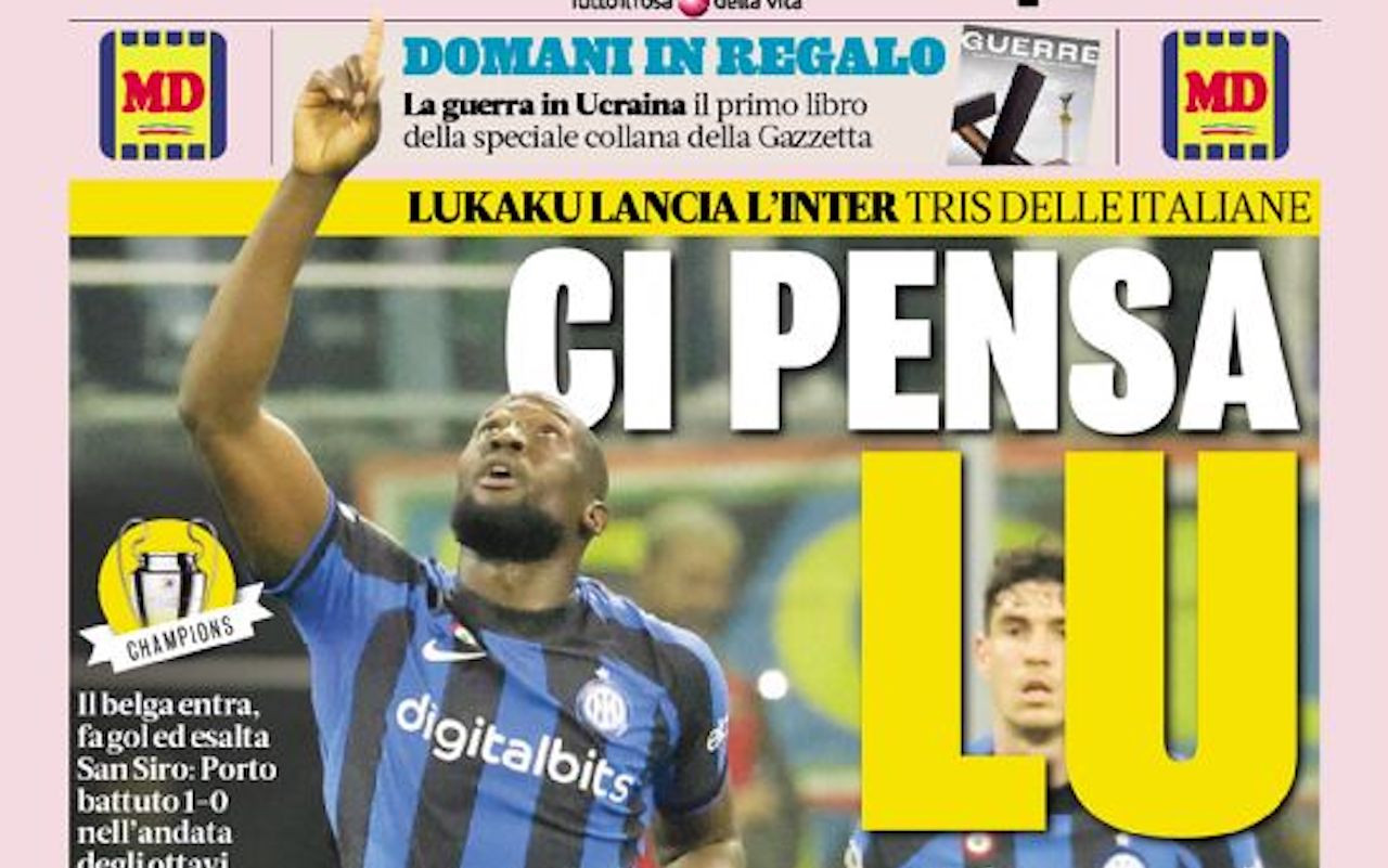 Nei principali quotidiani sportivi in edicola oggi, giovedì 23 febbraio, ampio spazio alla Champions League, con la vittoria dell’Inter contro il Porto. Poi spazio alle gare di ritorno di Europa League e Conference League con impegnate Juventus, Roma, Lazio e Fiorentina.