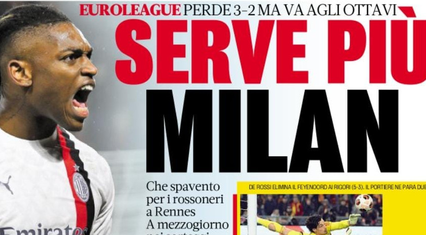 Le prime pagine sportive dei quotidiani in edicola oggi, venerdì 23 febbraio, si concentrano sulle sfide di Europa League e di Conference League, in particolare sul passaggio agli ottavi di finale di Milan E Roma. Inoltre, Torino e Lazio sono scese in campo per il recupero della ventunesima giornata di Serie A.