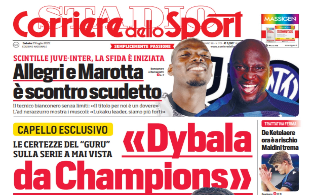 SCORRI LA GALLERY PER LE PRIME PAGINE SPORTIVE DEI QUOTIDIANI IN EDICOLA OGGI, SABATO 23 LUGLIO 2022