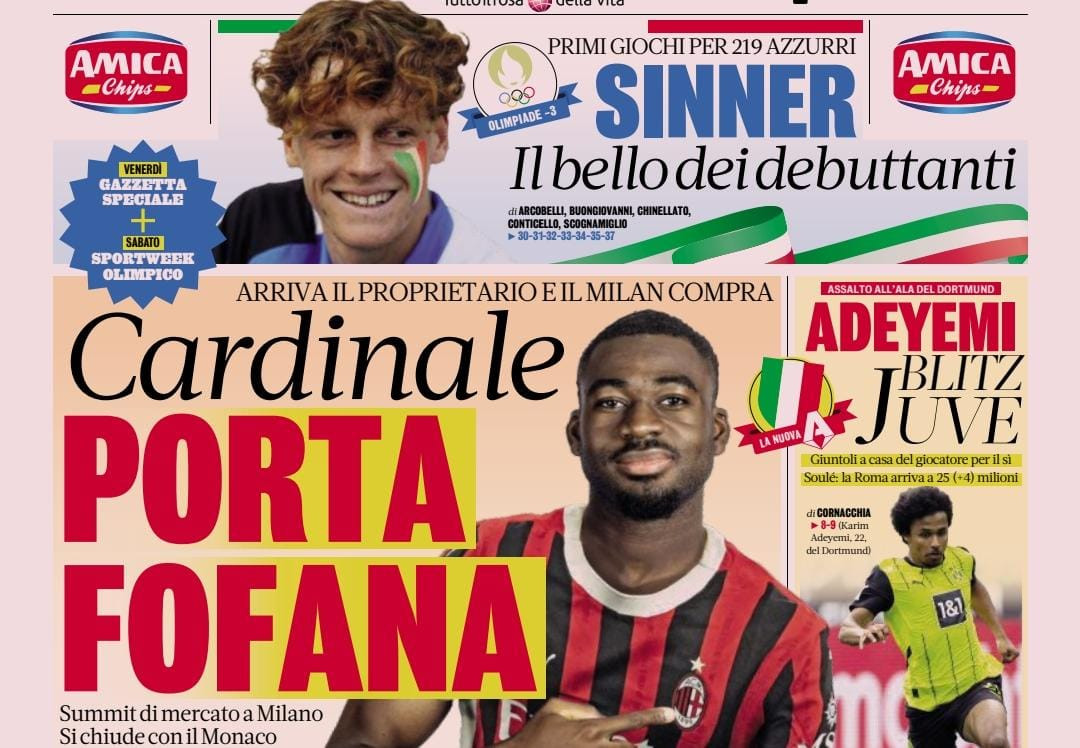 Il calciomercato, le prime amichevoli e le notizie dai ritiri estivi delle squadre di Serie A sono al centro delle prime pagine dei quotidiani sportivi e non sportivi in edicola oggi martedì 23 luglio.