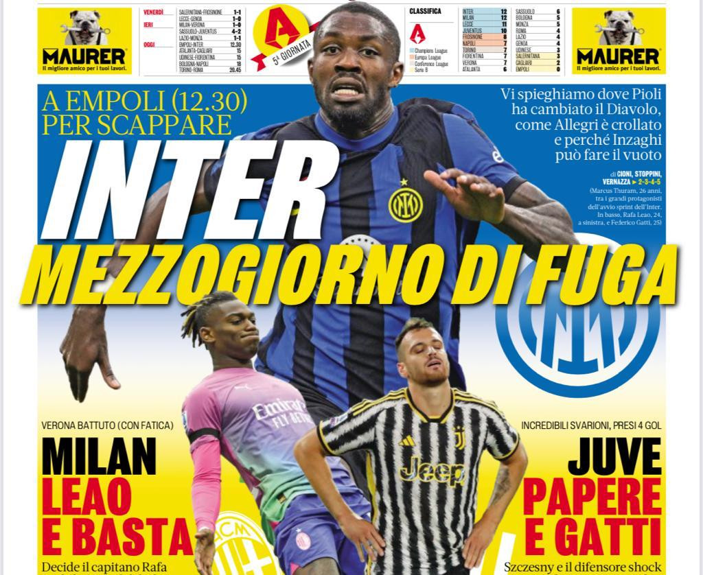 Le prime pagine dei quotidiani sportivi in edicola oggi, domenica 24 settembre, si concentrano sulla Serie A, dalla sconfitta della Juventus fino alle sfide di Inter e Napoli.