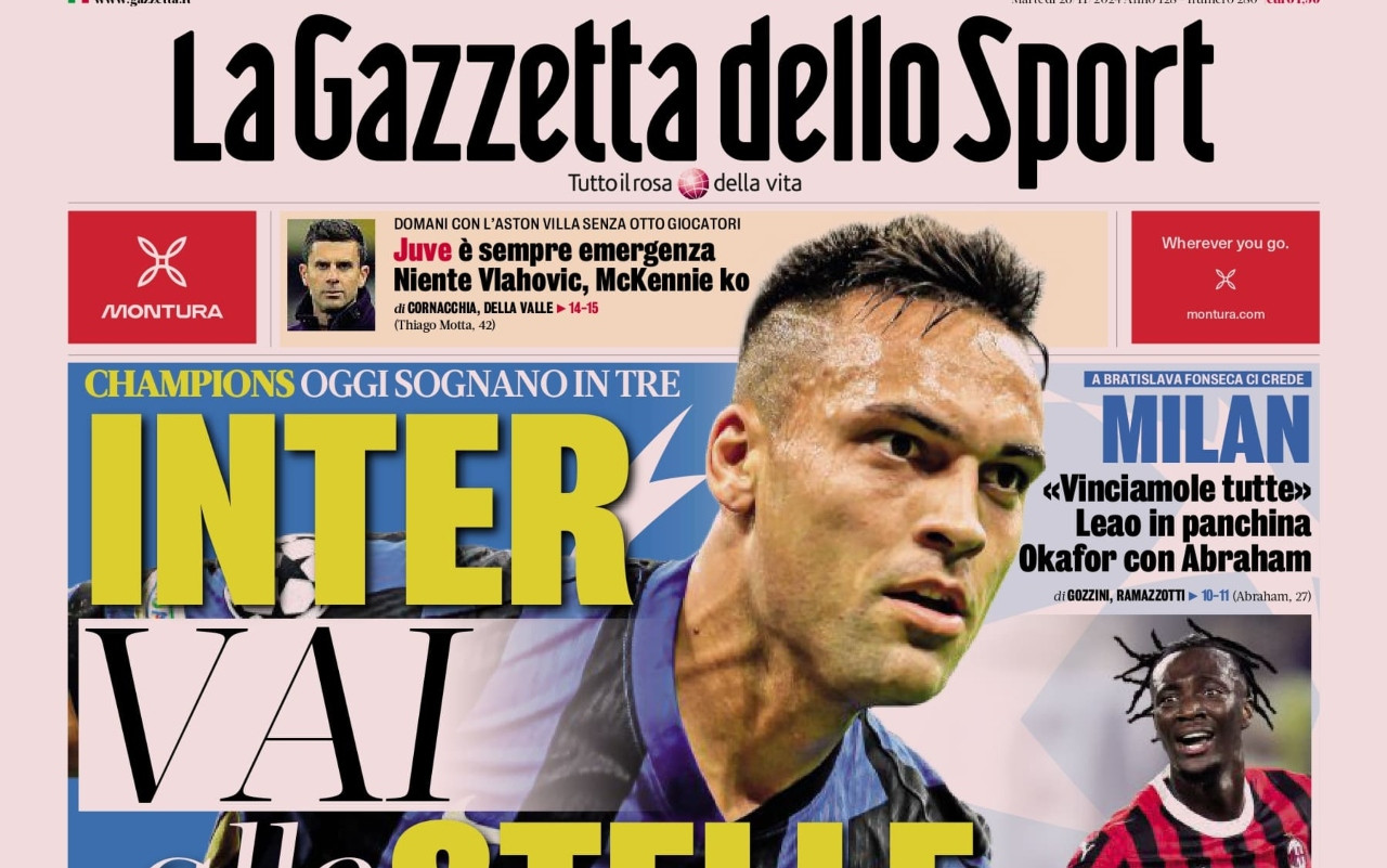 Le prime pagine dei quotidiani sportivi di oggi, martedì 26 novembre, in edicola. Diversi i temi toccati, con particolare focus sul quinto turno della Champions League, che prende il via stasera.