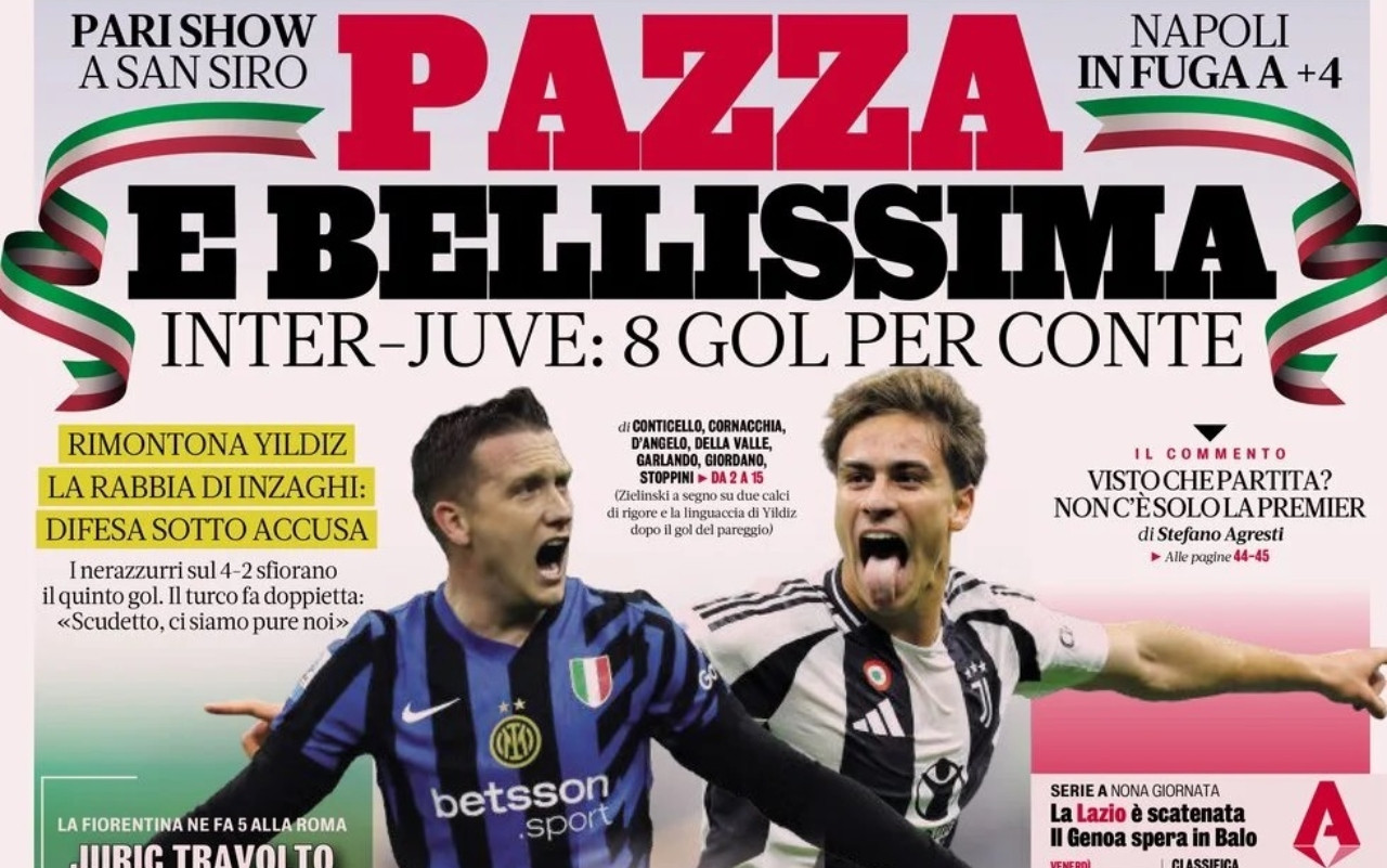 Le prime pagine dei quotidiani sportivi in edicola oggi, lunedì 28 ottobre, si concentrano Sul derby d’Italia tra Inter e Juventus ma anche sulla pesante sconfitta della Roma contro la Fiorentina.