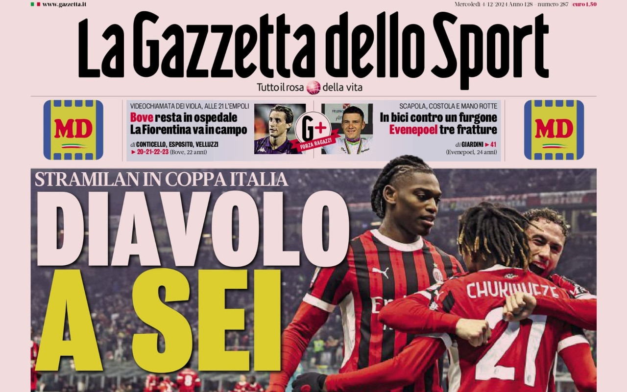 Le prime pagine dei quotidiani sportivi di oggi, mercoledì 4 dicembre: spazio al risultato della gara di Coppa Italia e al calcio internazionale.