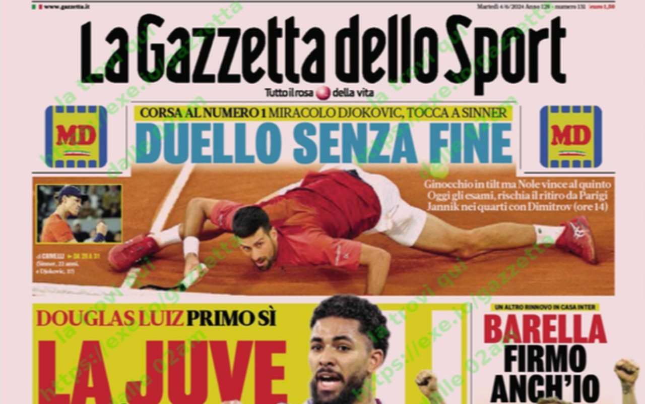 Le prime pagine dei quotidiani sportivi di oggi, martedì 4 giugno, si concentrano sull’interesse della Juventus per Douglas Luiz dell’Aston Villa, la riunione di 5 leggende della Nazionale italiana e l’accordo sulla risoluzione del contratto tra Allegri e i bianconeri.