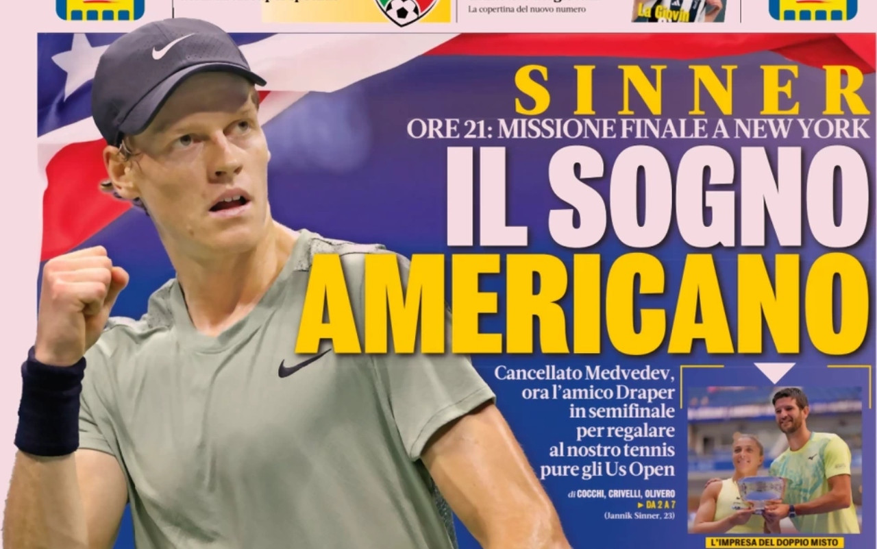 Le prime pagine sportive dei quotidiani in edicola oggi, venerdì 6 settembre 2024, si concentrano sui due appuntamenti dell’Italia. Gli Azzurri di Luciano Spalletti saranno impegnati in Nations League contro la Francia, mentre Sinner giocherà in semifinale agli US Open.