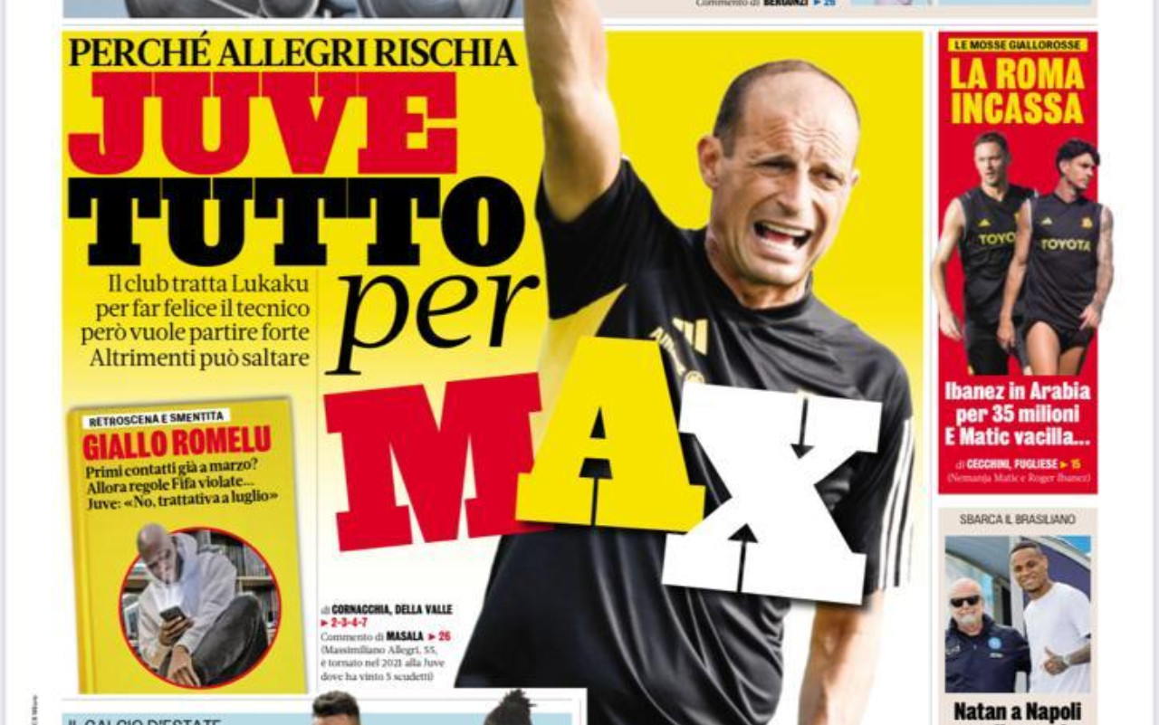 I principali quotidiani sportivi di oggi, lunedì 7 agosto, riprendono le news di calciomercato più rilevanti. Spiccano gli sviluppi della trattativa Lukaku-Juventus, ma c’è spazio anche per Vlasic-Torino e la possibilità che Piotr Zielinski parta da Napoli per andare in Arabia Saudita.