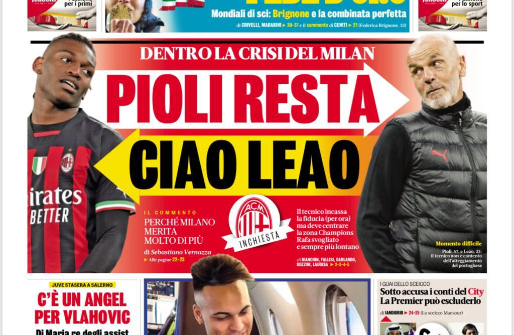 La 21ª giornata di Serie A si avvicina alla conclusione: la Juventus sarà ospite della Salernitana nell’ultima gara del turno. Tiene banco la situazione del Milan a due giorni dalla sconfitta nel derby, mentre in casa Roma prosegue la trattativa per la cessione di Zaniolo al Galatasaray. Questo e molto altro sui principali quotidiani – sportivi e non – in edicola martedì 7 febbraio 2023.