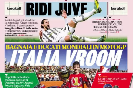Le vittorie della Juventus nel derby d’Italia e quella della Lazio nel derby di Roma si prendono la scena. Sono tanti i temi offerti da questa giornata di Serie A, a pochi giorni dall’inizio del Mondiale in Qatar. Questi e tanti altri gli argomenti affrontati nelle prime pagine sportive dei quotidiani in edicola oggi, lunedì 7 novembre 2022.