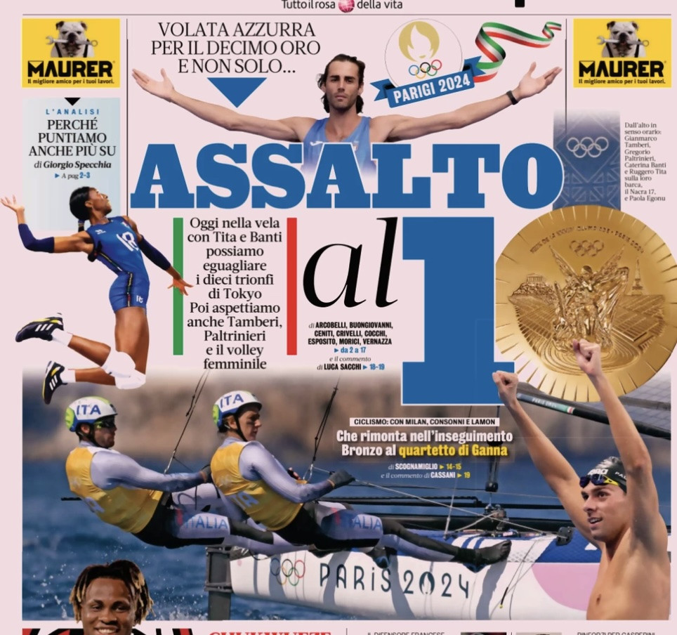 Le prime pagine sportive dei quotidiani in edicola oggi, giovedì 8 agosto, si concentrano sul calciomercato e, soprattutto sulle medaglie italiane alle Olimpiadi di Parigi.