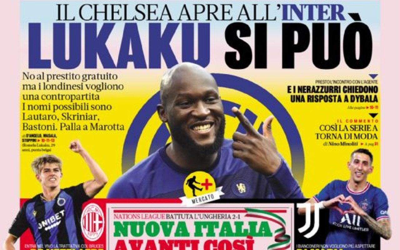 L’Italia batte l’Ungheria con i gol di Barella e Pellegrini, e vince la prima partita ufficiale contro l’Ungheria dopo la mancata qualificazione al Mondiale. Il Chelsea apre all’Inter per il prestito di Lukaku, mentre la Juventus si allontana da Di Maria e punta Domenico Berardi. Questi e molti altri temi nelle prime pagine dei quotidiani sportivi e non in edicola oggi.