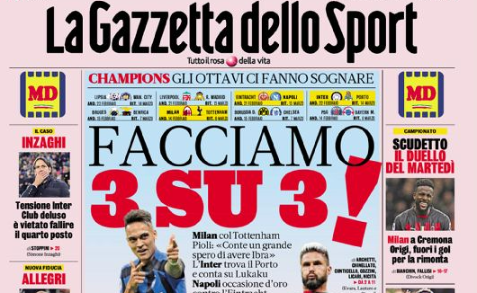 SCORRI LA GALLERY PER LEGGERE LE PRIME PAGINE SPORTIVE DEI QUOTIDIANI IN EDICOLA OGGI