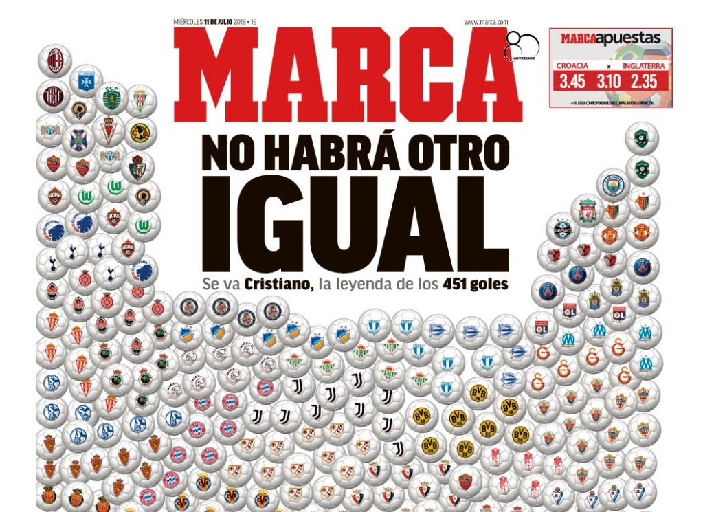 Marca saluta CR7 con una prima in cui ricorda tutti e i gol segnati dal portoghese con la maglia del Real Madrid: “Non ci sarà nessun altro come lui”.
