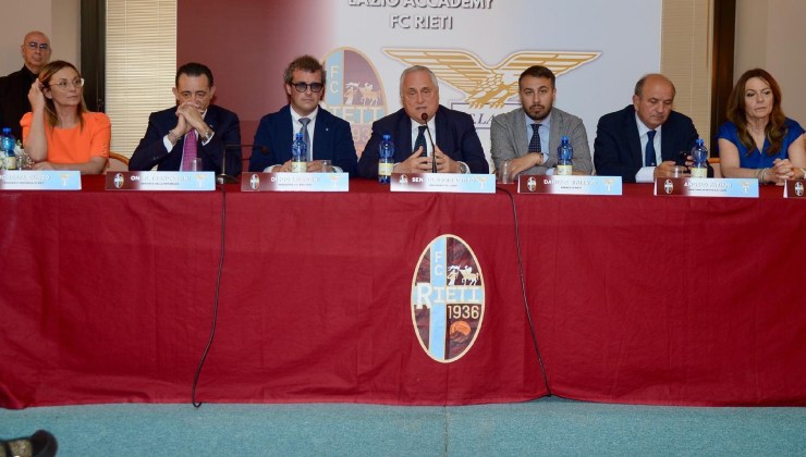 Nel corso della conferenza stampa sono intervenuti Claudio Lotito, presidente della S.S.Lazio, Angelo Mariano Fabiani, DS della società biancoceleste, Diego Leoncini, presidente del FC Rieti, onorevole Trancassini e il sindaco di Rieti Daniele Sinibaldi.