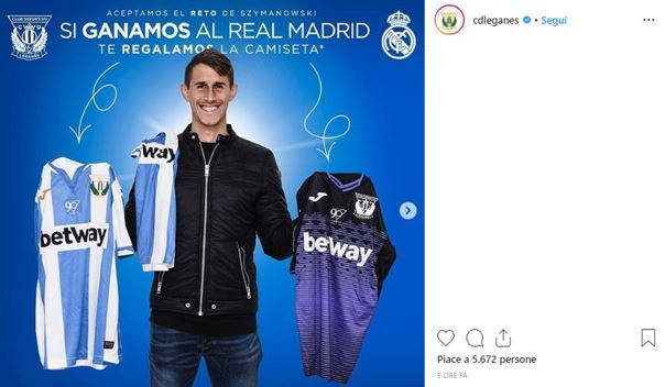 Nella chat whatsapp pubblicata dal club a riprova dell'idea del calciatore argentino, l'interlocutore di Szymanowski spiega al calciatore che non è possibile regalare tutte le maglie ai tifosi. Ed è qui che il centrocampista ha chiesto… coraggio. Quello che servirà al Leganès per batter il Real Madrid. Di conseguenza il Leganés ha tirato fuori “los huevos” e ha confermato tutto sul suo profilo Twitter: “Si ganamos al Real Madrid, te regalamos la camiseta” – "Se vinciamo contro il Real Madrid ti regaliamo la maglietta".