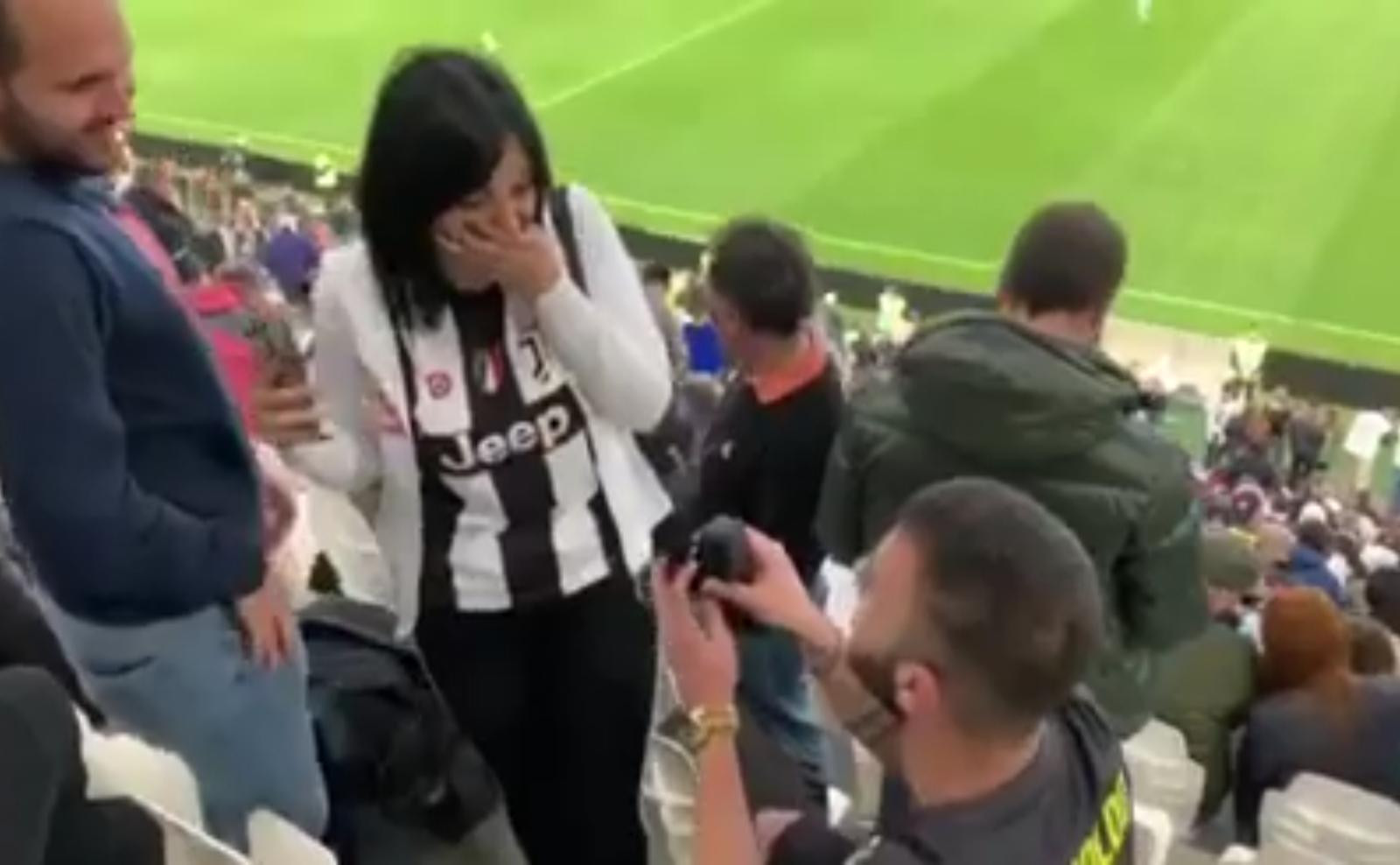 E' accaduto ieri, quando l'Allianz Stadium è diventato il teatro della proposta di matrimonio di Dylan, tifoso bianconero, alla sua Tiziana. All'intervallo di Juventus-Empoli, lui si è inginocchiato ed ha formulato la proposta porgendo l'anello.