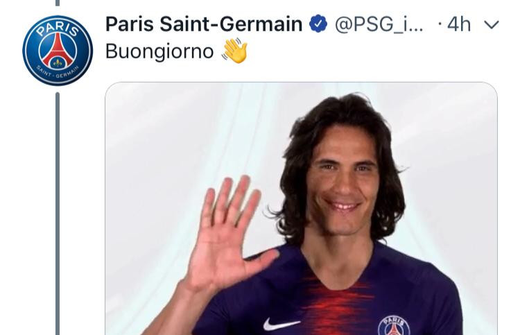 Gli azzurri, notando il velo d’ironia nelle parole scritte dalla squadra di Mbappè e Neymar, hanno risposto a tono. Semplici, schietti: “noi ci saremo!”, pronti a lanciare la sfida al grande ex di turno: Edinson Cavani. Già, il Matador. E proprio le vecchie glorie dei due club sono diventate, tweet dopo tweet, lo strumento ideale per punzecchiarsi vicendevolmente: in men che non si dica, l’uruguagio e Ancelotti sono finiti al centro della “sfida” social. Una GIF con l’ex attaccante azzurro, che saluta sorridente tutti i suoi ex tifosi e accompagnato dalla scritta “Buongiorno” in perfetto italiano, ha dato il via alle danze..