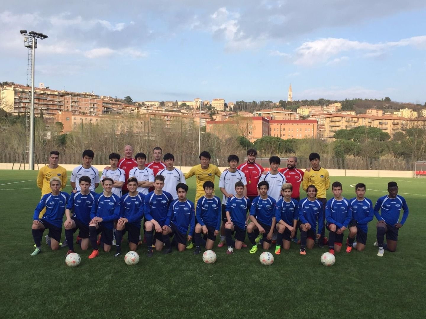Una giornata all’Academy – Verso le 15.30 arrivano i ragazzi divisi in maglie bianche (’98-’99 nordcoreani) e maglie blu (’98-’02): pullman rigorosamente dell’Accademy con in mezzo il logo. L’autista li va a prendere a scuola ad Assisi e li porta a Perugia, “prima avevamo un pulmino, poi abbiamo preso il pullman da 40 posti e ultimamente siamo stati costretti a cambiarlo con uno da 50”, il commento di Luis Pomares. Giornata un po’ nuvolosa, gli allenatori (uno per ogni gruppo) hanno già preparato tutto per gli esercizi. Partenza blanda, però, “perché nella loro cultura dopo pranzo si dorme e infatti anche loro si riposano in pullman. Quindi riscaldamento, riattivazione e poi si passa al resto”, sottolinea uno degli allenatori. Cinque minuti, cinque per cambiarsi ed eccoli in campo. Uno più sorridente dell’altro. Sguardo ammaliato, spensierato, non vedono l’ora di toccare il pallone. Alessandro e Luis li guardano, ci parlano, li coccolano. L’immagine è quella di una grande famiglia, dove la passione eclissa qualsiasi problema la vita quotidiana posso proporre. Che, poi, quando fai quello che ti piace, giocare a pallone nello specifico, non esiste problema che tenga!