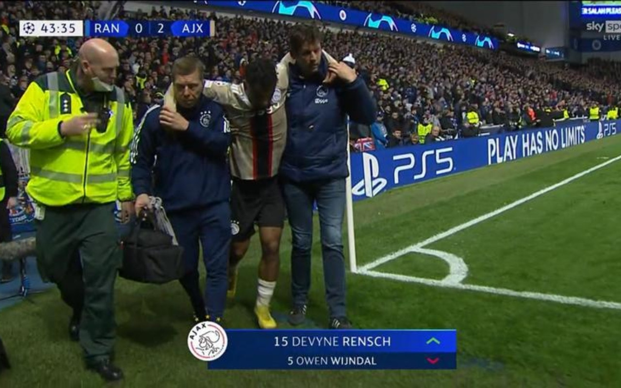 Prima Bradaric dei Rangers, soccorso dallo staff medico ma tornato normalmete in campo, poi Wijndal dell’Ajax. Quest’ultimo, però, è stato costretto al cambio per quello che sembra essere un infortunio abbastanza grave