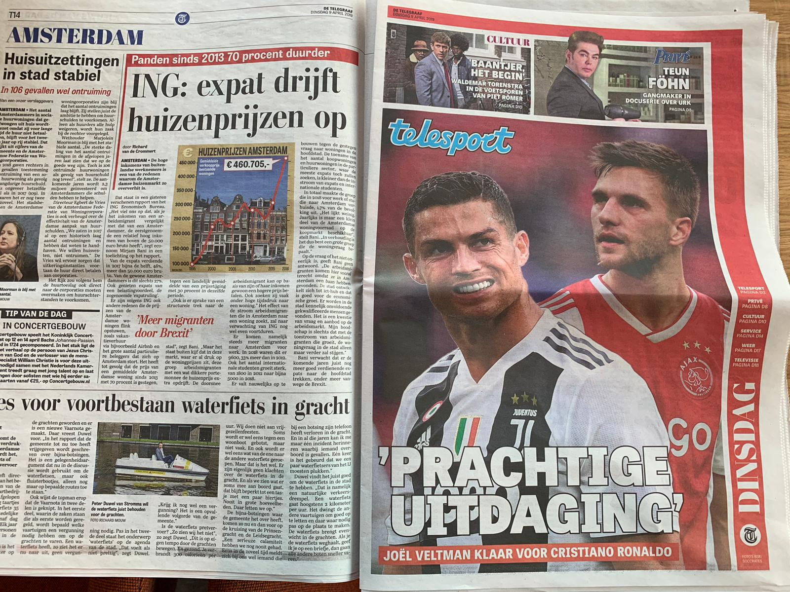 Il conto alla rovescia sta per finire. "Sfida meravigliosa" così titola il De Telegraaf introducendo la super sfida di stasera tra Ajax e Juve. In copertina ci sono due protagonisti molto attesi: Cristiano Ronaldo e Joël Veltman. L'olandese dovrà cercare di limitare il talento del portoghese fatto di dribbling e accelerazioni. Ma Ronaldo è pronto a dare spettacolo e a stupire l'Amesterdam Arena.