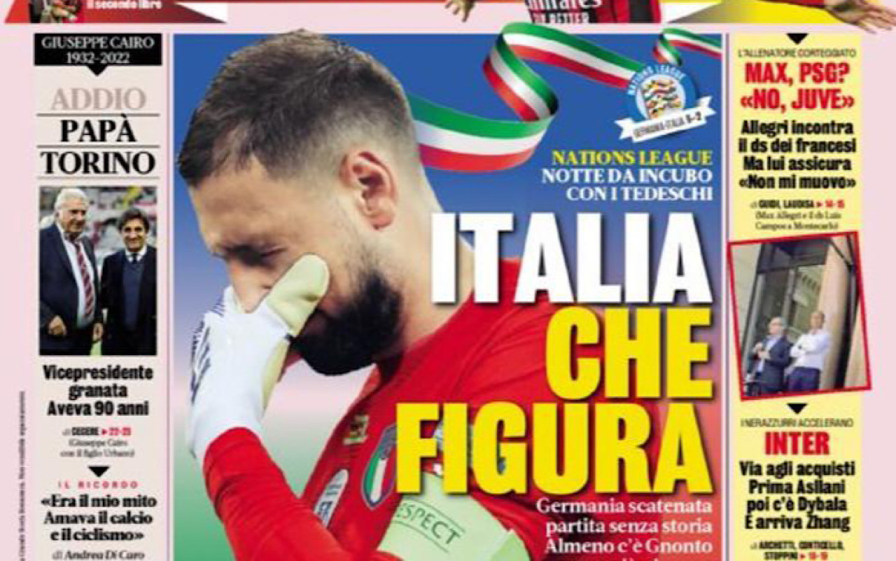 I quotidiani in edicola oggi, mercoledì 15 giugno 2022. Ampio spazio alla pesante sconfitta dell’Italia in Nations League contro la Germania, ma anche tanto mercato.