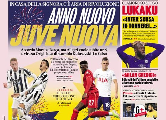 I quotidiani in edicola titolano sul mercato delle squadre di Serie A. “Juve, è Icardi il bomber giusto“: questo il titolo di Tuttosport, che riporta un’intervista a Walter Sabatini. Il Corriere dello Sport dedica la sua apertura all’intrigo Depay-Morata: “Depay per Morata. La Juve: non basta“.