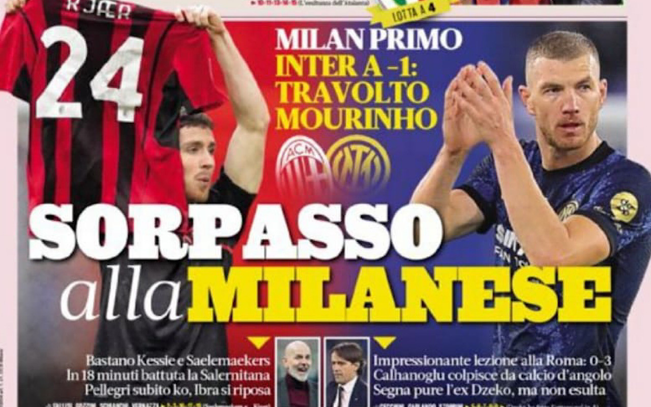 I quotidiani sportivi in edicola oggi, domenica 5 dicembre, titolano sul Milan vittorioso contro la Salernitana, un’Inter straripante a Roma e un’Atalanta che vincendo a Napoli si avvicina alla vetta.