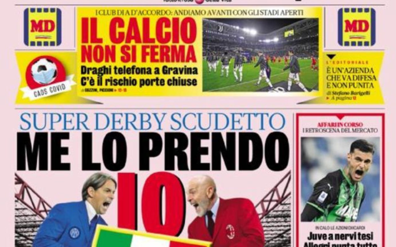 I quotidiani in edicola oggi, sabato 8 gennaio, aprono sull’ipotesi di uno stop per la Serie A, dopo il colloquio tra il premier Mario Draghi e il presidente federale Gabriele Gravina.