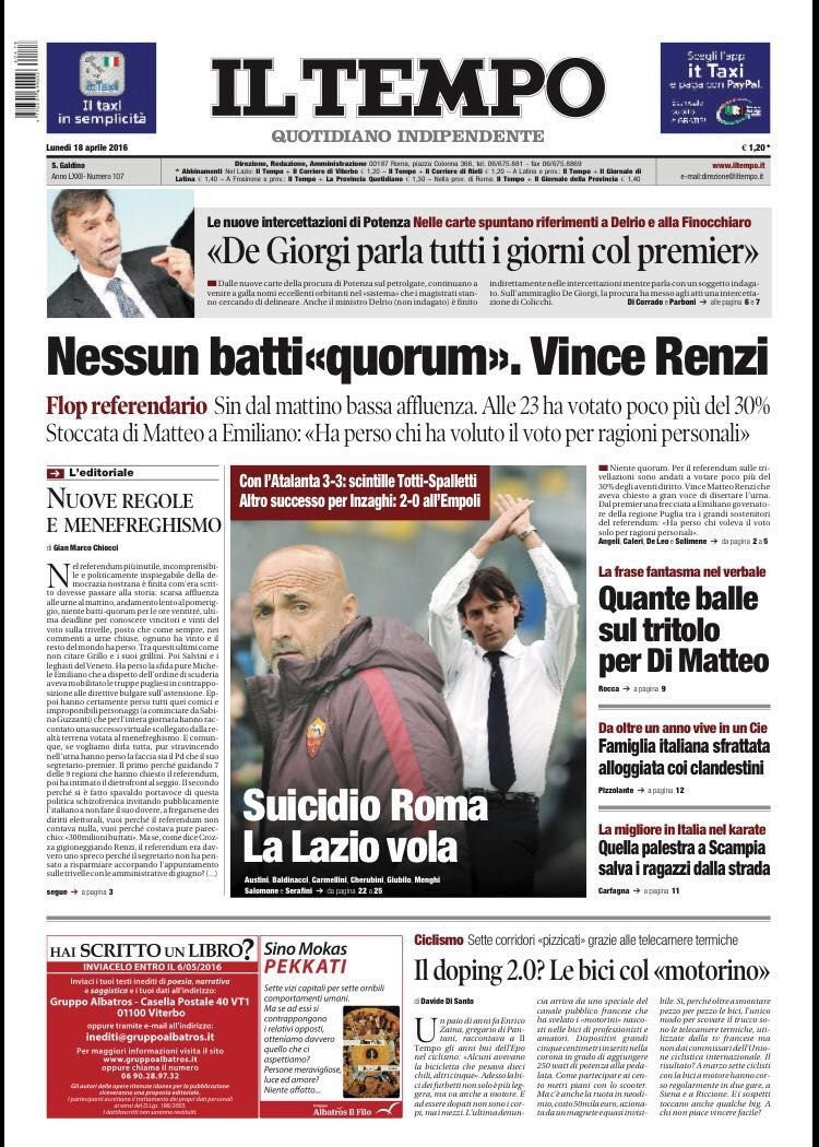 Proprio agli azzurri il ‘Mattino‘ regala la spalla della prima pagina, dove fanno capolino le parole di Maurizio Sarri: “Tanti ci invidiano”, riconducibili all’attuale secondo posto in classifica che vale l’accesso diretto ai gironi di Champions. Più giù non poteva mancare il caso che ha acceso la domenica, il confronto Totti-Spalletti andato in scena nel tunnel dell’Atleti Azzurri d’Italia. ‘Quel calcio piccolo piccolo che ha il volto di Spalletti’ titola il quotidiano campano, che dimostra senza mezzi termini da che parte stare.
