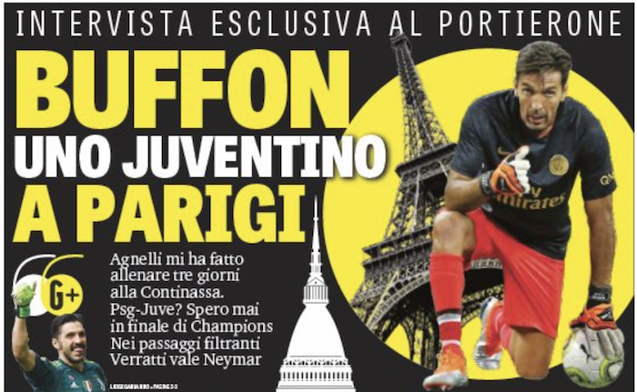 La Gazzetta dello Sport dedica la prima pagina alla lunga intervista rilasciata a Gigi Buffon, portiere del Psg, in cui si parla di presente, futuro e della Nazionale. Domenica sera il derby di Milano tra Inter e Milan, tutto pronto per il grande incrocio tra la squadra di Spalletti e quella di Gattuso. Il Corriere dello Sport apre la sua prima pagina con un’intervista a Mazzola che dice “il derby è tutto”. Al primo Inter-Milan segnò dopo 13 secondi, poi fece la storia: “È vissuto appieno solo dai tifosi”. Si parla poi di mercato in taglio alto con “la Juve che va a sinistra. Esiste un caso Alex Sandro: richiesta troppo alta per il rinnovo, club pronto a tornare sul mercato per Grimaldo del Benfica”. In taglio basso spazio anche al caso Slovacchia con Skriniar coinvolto ma anche alla Roma che a gennaio è pronta a riprovarci per Berardi e poi: “Barça su Koulibaly, al Napoli 100 milioni” e “tra Conte e il Chelsea risoluzione in vista”.