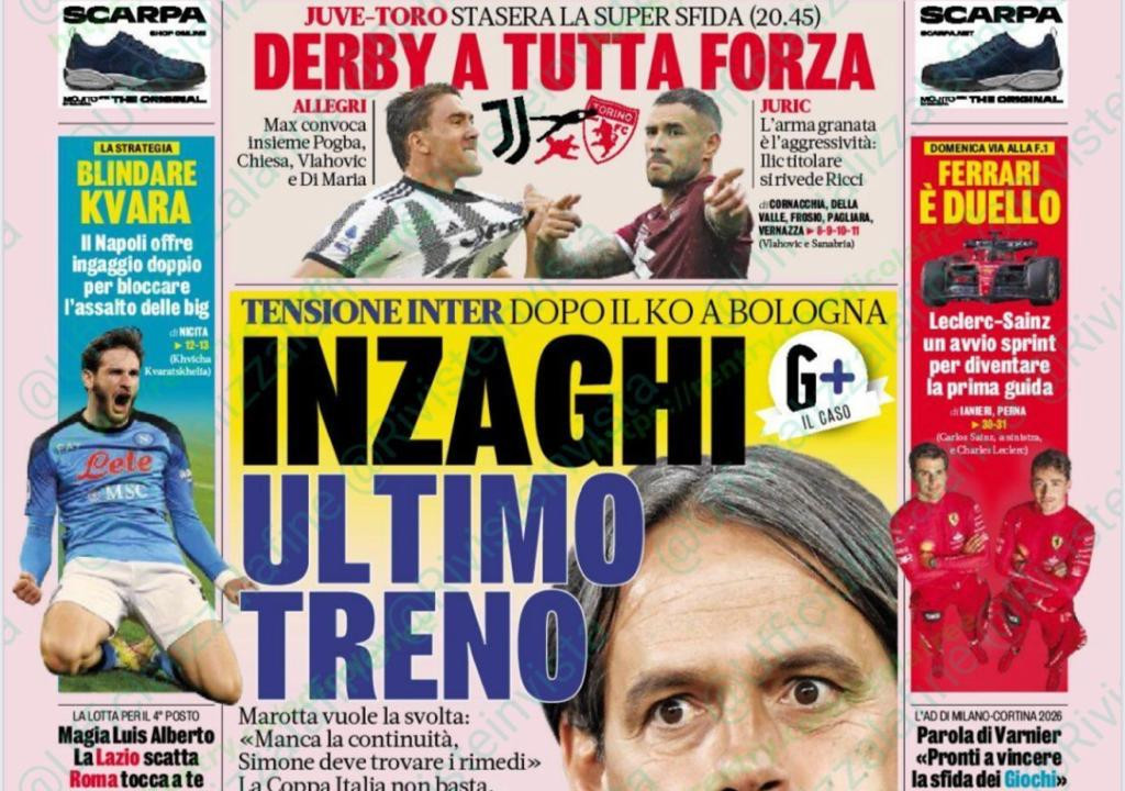 I quotidiani sportivi in edicola oggi, 28 febbraio 2023 spaziono dal derby Juventus-Torino agli approfondimenti sull’Inter dopo la sconfitta a Bologna, la Roma che vuole il secondo posto e il Napoli formato record. Focus anche sul tennis e gli altri sport.