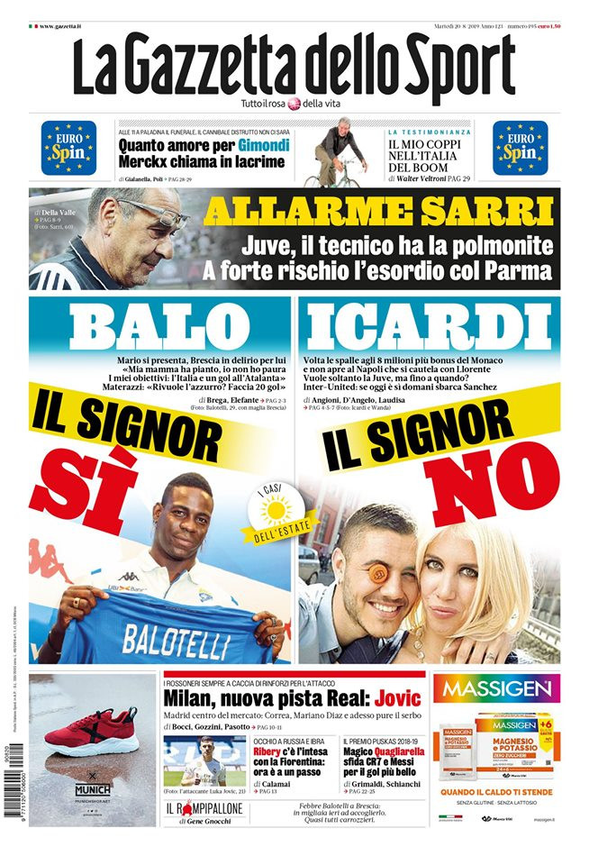 Si avvicina l'inizio della Serie A, ma è soprattutto il calciomercato a farla da padrone sulle prime pagine dei quotidiani in uscita oggi, martedì 20 agosto.
