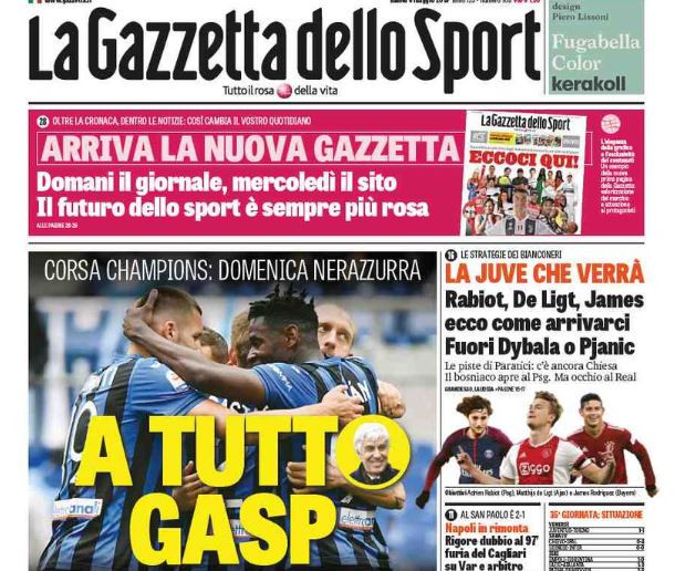 Il mercato della Juve, la Champions che si allontana dalle romane a vantaggio di una super Atalanta, ma anche le polemiche sull'asse Napoli-Cagliari nel posticipo della domenica: questo e non solo il lunedì sulle prime pagine dei quotidiani sportivi in edicola. SFOGLIA LA FOTOGALLERY IN ALTO.